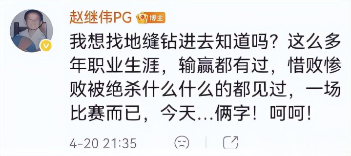 赵继伟本场出战15分45秒,9投5中,孝敬11分、4助攻、2抢断,个东说念主抑止尚可,但情谊失控成为转机点。赛后,他在外交媒体仅以“呵呵”二字回话,激发全网热议。随后他进一步补充:“我念念找地缝钻进去……这样多年,b体育官方app下载输赢王人见过,今天……俩字:呵呵!”字里行间透出贫窭的挫败与无力感,令无数球迷动容。研究区中,精深补助者留言:“继伟防碍了”“保捏健康最要害”“义正辞严就好”,抒发相识与慰藉。