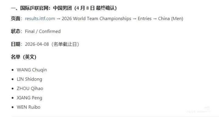 樊振东因为2025年全运会男单冠军赢得纵贯限额,但奥恰洛夫直言,樊振东将缺席世乒赛,王励勤的回话是和本东说念主正在调换,但尊重个东说念见地愿。第五东说念主的聘任题,如何选都疼。剩下的东说念主选联结在梁靖崑和温瑞博之间。梁靖崑,教授够,但景象下滑显然,腰部伤势不解。温瑞博,19岁,从没打过海外团体大赛。你敢在淘汰赛让他上?