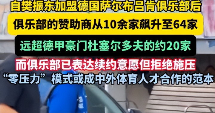 他让萨尔布吕肯这个德国小城,被更多中国东谈主熟知,当地旅社搜索量飙升200%,俱乐部援救商从10家激增至64家,中德青少年乒乓球换取举止,参与东谈主数也同比增长210%。