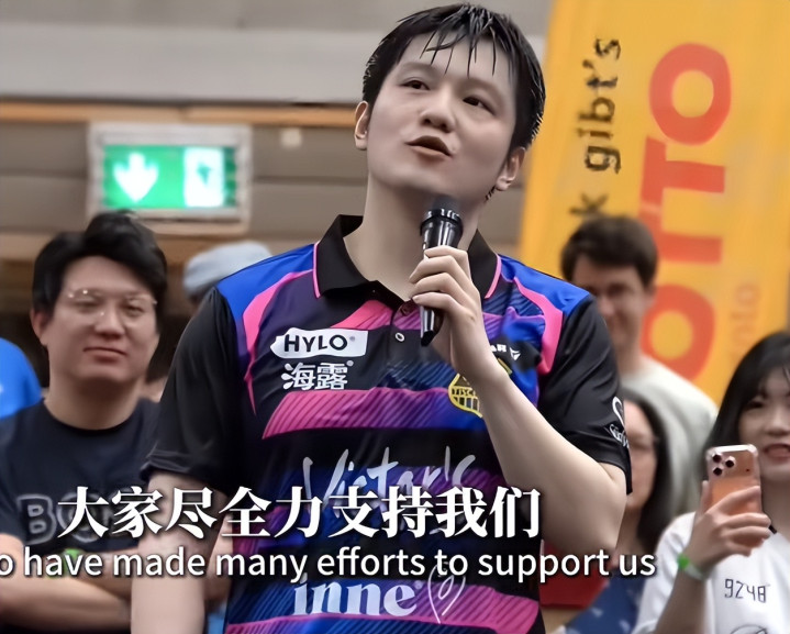 樊振东用全英文向球迷致辞,说环球永恒是一又友和家东谈主,看台上陡然亮起了中语口号,神色异常感东谈主。