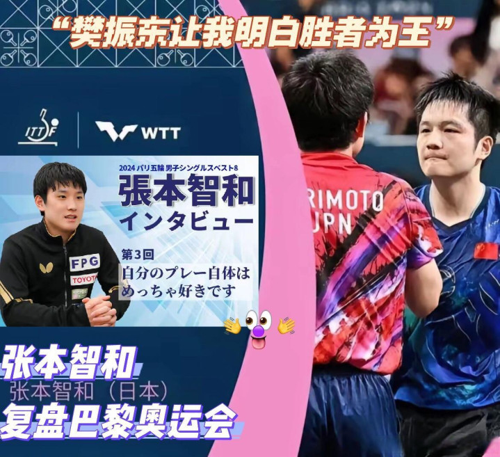 就连日本男乒主力张本智和,平日向来放肆,提到樊振东也会照拂作风,说樊振东是我方选藏的对象,是我方英勇追赶的宗旨。