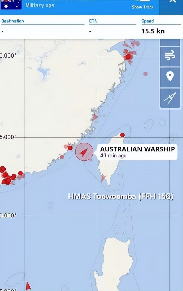 2月20日早晨时辰,澳大利亚舟师那艘名为“图文巴”号的护卫舰,自南海区域参预到台岛海峡当中,循着由南朝着北的标的行进。